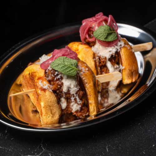 Suaves, especiadas y reconfortantes, con salsa gravy. Presentadas ahumadas en mesa.