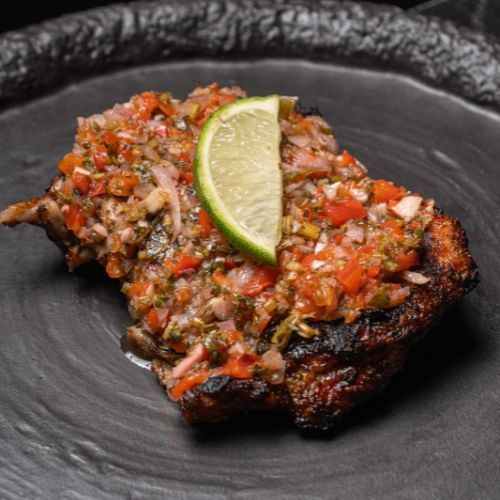 Contramuslo al Josper marinado en chimichurri, potente y aromático, con un toque de lima.