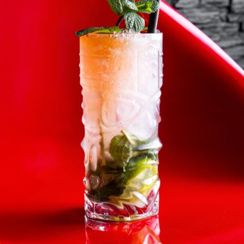 Un viaje de sabores tropicales con ron blanco, hierbabuena, azúcar moreno y lima. Puedes añadir puré de frutas para un toque extra.