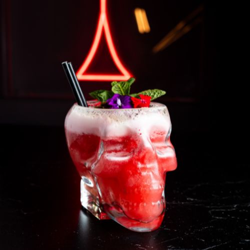 La mezcla perfecta de ron, ginebra, granadina, pulpa de coco y zumo de piña, tan vibrante como su nombre.