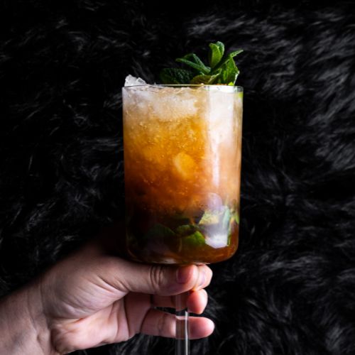 Un trago audaz con Jäger, lima, sirope simple y Sprite, suavizado con hierbabuena y azúcar moreno.