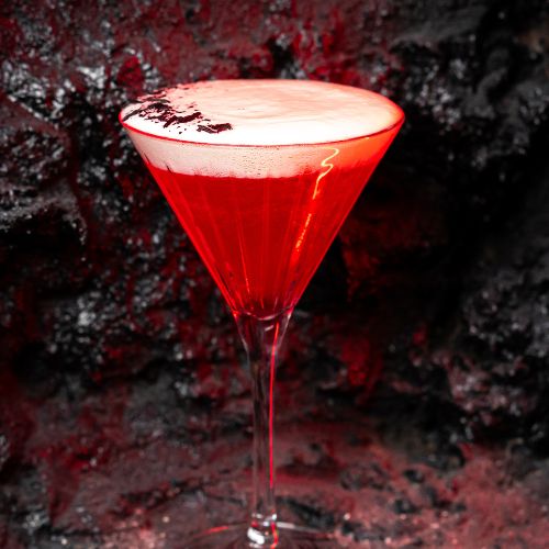 Sabiduría líquida con té hibisco, granadina, ginebra y un delicado toque de zumo de lima.