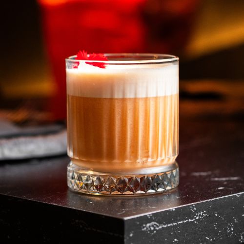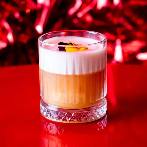 Un clásico con carácter: whisky, zumo de limón, clara de huevo, y un mix de siropes de vainilla, canela y simple.