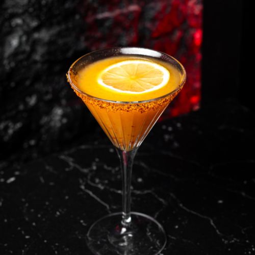 Tequila Sunrise: Un amanecer explosivo de sabores con tequila de mango, zumo de limón y un toque picante de tajín.